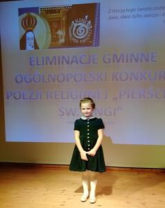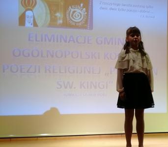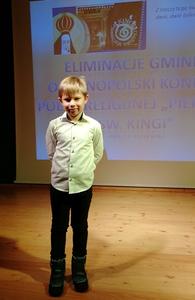 W Ośrodku Gminy Tomice odbyły się eliminacje gminne do Ogólnopolskiego Konkursu Polskiej Poezji Religijnej "Pierścień Św. Kingi". Uczniowie z naszej szkoły już od kilku lat biorą udział w tymże konkursie. Wielką chlubą są dla nas prezentowanie przez nich umiejętności recytatorskie, które pozwalają im na zdobycie nominacji do etapu ogólnopolskiego. W tym roku swoje talenty prezentowali: Julia Kwarciak (kl. I), Hanna Wilk (kl. I), Maksymilian Mrowiec (kl. III), Julia Kasperek (kl. IV), Sara Mrowiec (kl. IV), Karolina Baster (kl.IV), Martyna Słonina (kl. Vb), Kamila Byrska (kl. Va), Jakub Ryba (kl. Va), Hubert Bliźnik (kl. VI), Aleksandra Kajfasz (kl. VII).