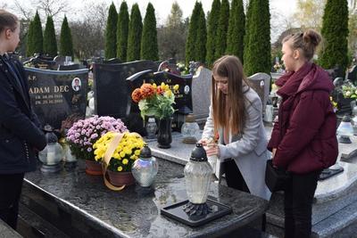 Zbliża się miesiąc listopad, a z nim dni ważnych historycznych wydarzeń. Wspominamy Tych, którzy od nas odeszli, a którym jesteśmy winni dług wdzięczności. Już od kilku lat uczniowie naszej szkoły wraz z nauczycielami i Dyrekcją odwiedzają cmentarze, by w zadumie pochylić się nad mogiłami Tych, którzy kiedyś pracowali w naszej szkole - dyrektorów, nauczycieli, kapłanów, ludzi zasłużonych dla społeczności szkolnej. W środę 30 października delegacja naszych uczniów z Dyrektorem i opiekunem SU udała się na cmentarze w Tłuczani, Tomicach i Radoczy. Tam w imieniu całej Szkoły zapalili znicze, złożyli kwiaty i pomodlili się za: śp. Marię Przystał z rodziną, śp. Jana Sarapatę z rodziną; śp. Adama Deca z rodziną; śp. Adama Kręciocha.