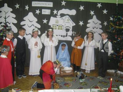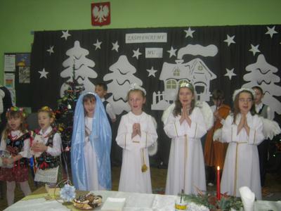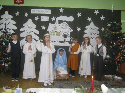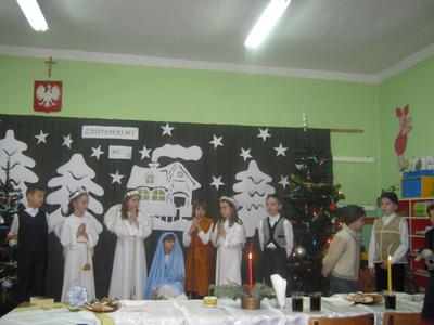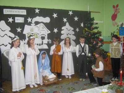 W dniu21.12.2011 w szkole w Lgocie odbyły się uroczyste Jasełka oraz wigilia szkolna. Z zaproszonych gości na uroczystość przybyli: Pan Dyrektor, Pani Marta Książek oraz Rodzice. Uczniowie przedstawiali Jasełka oraz śpiewali kolędy i pastorałki. Po części artystycznej i krótkiej modlitwie łamaliśmy się opłatkiem i składaliśmy sobie życzenia. A na koniec Pan Dyrektor wręczył pamiątkowe upominki uczniom, którzy zostali wyróżnieni w konkrsie na kartkę świąteczną wykonaną w programia Paint lub Tux Paint. Spotkanie przebiegło w miłej i świątecznej atmosferze. Życzymy wszystkim zdrowych i spokojnych świąt Bożego Narodzenia oraz szczęściwego Nowego Roku.