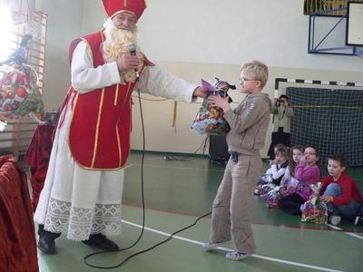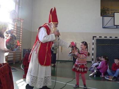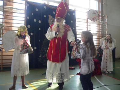 Jak co roku, z radością i nieco niecierpliwie, oczekiwaliśmy przybycia świętego Mikołaja. Gdy wreszcie nadeszła ta upragniona chwila, na sali gimnastycznej każdy odważnie i z uśmiechem podchodził po prezent. Gdy wróciliśmy do klasy wszyscy z wielką ciekawością zaglądali do swoich paczek, sprawdzając co też Mikołaj ciekawego przyniósł.