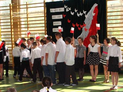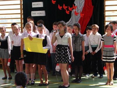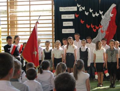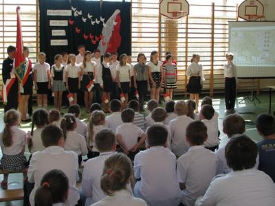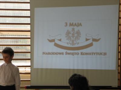 W środę 2 maja 2012 roku uczniowie klasy IV pod przewodnictwem wychowawczyni pani Marty Książek przygotowali uroczystą akademię z okazji rocznicy uchwalenia Konstytucji 3 Maja. Na chwilę prznieśliśmy się w XVIII wiek. Dowiedzieliśmy się, jakie znaczenie miała dla Polaków Konstytucja, poznaliśmy nazwiska ludzi, którzy mieli wpływ na politykę i kulturę naszej Ojczyzny. Przypomnieliśmy sobie, co to znaczy być Polakiem, w jaki sposób można wyrażać patriotyzm, czym jest wolność i niepodległość.