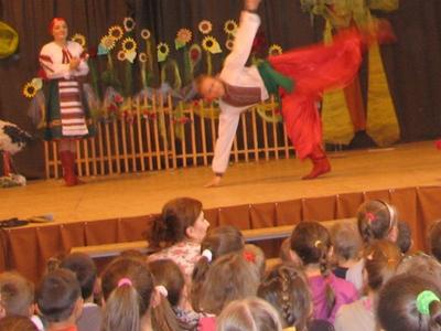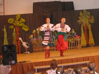 W poniedziałek 4 czerwca 2012 roku gościliśmy zespół folklorystyczny z Ukrainy. Mogliśmy podziwiać wspaniały śpiew, taniec ale i umiejętności gry na regionalnych instrumentach. Kontakt z artystami wywołał wiele pozytywnych wrażeń i zachęcił dzieci do nauki tańca - też regionalnego.