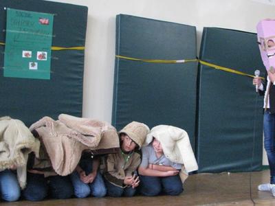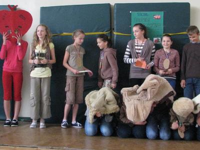 W dniu 5 czerwca 2012 roku w naszej szkole odbyło się podsumowanie całorocznej akcji "Warzywa warto znać i chętnie je spożywać". W ramach podsumowania każda klasa przygotowała w dowolnej formie reklamę wylosowanego warzywa. Na koniec wszyscy degustowali jarzynową sałatkę przygotowaną przez panie z kuchni. Wspólną zabawę uwieńczyły poznane w ramach Dnia bez Przemocy hasła - okrzyki, którymi nagradzano występujących.