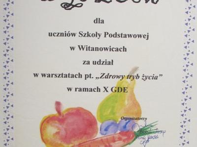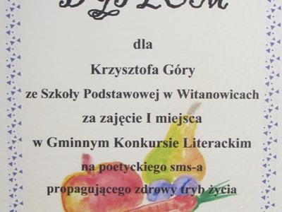 W środę 6 czerwca 2012 roku dziewczęsta z kl. IV reprezentowały naszą szkołę na warsztatch artystyczno - technicznych "Zdrowo i kolorowo" w Woźnikach. I tym razem odnieśliśmy sukces. Nasza drużynaw składzie: Adamik Kamila, Bałys Krystyna, Żurek Sabina oraz Zając Weronika - zdobyła drugie miejsce, a poetycki sms Krzysztofa Góry propagujący zdrowy tryb życia wywalczył I miejsce w gminie.