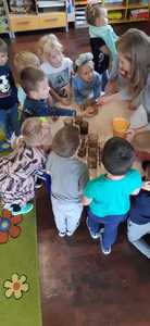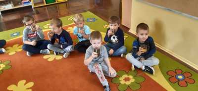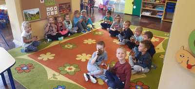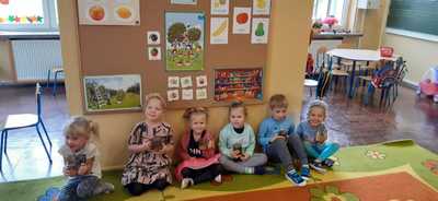 28 września grupa Lisków obchodziła Święto Jabłka. Tego dnia na dzieci czekało wiele atrakcji. Przy okazji zabaw przedszkolaki poszerzały swoją wiedzę o jabłku: poznawały różne gatunki jabłek, kolory, kształty, zapachy. Rozmawiały także o tym, co możemy przygotować z tych owoców. Ponadto wykonały kilka zadań matematycznych: tworzyły zbiory, przeliczały owoce, porównywały wielkość, wykonywały ćwiczenia wspomagające kształtowanie orientacji przestrzennej. Pięciolatki wspólnie z Paniami przygotowały pyszny sok jabłkowo- marchewkowo- pomarańczowy który bardzo im smakował. Po jabłkowym poczęstunku dzieci przystąpiły do wykonania prac plastycznych. Dzieci wykonały piękne jabłka z kolorowej wydzieranki. Mamy nadzieję, że taki „tematyczny dzień” w przedszkolu: zabawy, zajęcia, pogadanki zachęcą dzieci do sięgania po owoce i posłużą promocji zdrowego stylu życia.