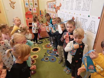 30 września w Grupie Tygrysków obchodziliśmy bardzo ważne święto, a mianowicie Dzień Chłopaka. Musieliśmy uczcić ten dzień wyjątkowo, ponieważ w naszej grupie są sami wyjątkowi chłopcy. Na początku dziewczynki złożyły życzenia, zaśpiewały wszystkim chłopcom Sto lat oraz wręczyły drobne upominki. Następnie zaproszono wszystkie dzieci do wspólnej zabawy przy różnorodnych pląsach muzyczno- ruchowych. Radości oraz wzruszeń nie było końca.