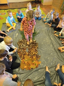 - przypomniały sobie zasady „jak zachowujemy się w lesie”, oraz korzystając z pięknej jesiennej pogody wybraliśmy się na spacer do pobliskiego lasu gdzie obserwowaliśmy przyrodę.