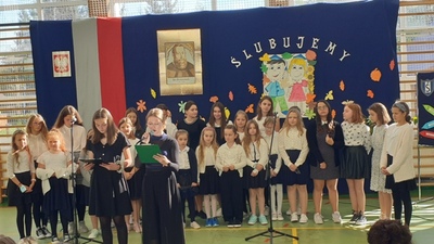 Uroczystości w naszej szkole ciąg dalszy. 15 października obchodziliśmy, Świeto Patrona naszej Szkoły - Jana Kochanowskiego, obchodziliśmy Święto Edukacj Narodowej oraz Dzień Papieski. Akademię o patronie naszej szkoły przygotowali uczniowie klas ósmych pod opieką p. Renaty Kowalczyk i p. Moniki Smoleń.