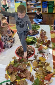 Grupa "Liski" bierze udział w Ogólnopolskim Projekcie Edukacyjnym- Gramy Zmysłami. Zadanie do zrealizowania w październiku to ścieżka sensoryczna. Gołymi stópkami dreptaliśmy po mchu, liściach, korze drzew, szyszkach, gałązkach, żołędziach, kasztanach i orzechach.