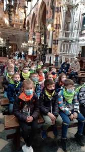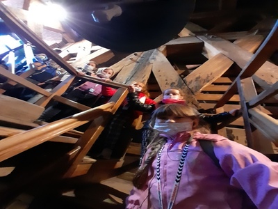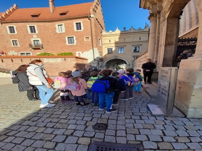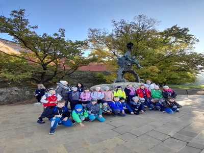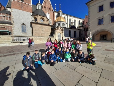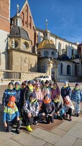 19 października w klasy młodsze pierwsza, druga i trzecia pojechały na wycieczkę do naszego pięknego Krakowa. Tam poznawaliśmy historię miasta, które było kiedyś naszą stolicą Polski. Po okiem pań przewodniczek oraz wyposażeni w sprzęt audio z wielkim zainteresowaniem zwiedzaliśmy Wzgórze Wawelskie, z uwagą słuchaliśmy opowieści o koronacjach królów Polski m.in. o Kazimierzu Wielkim, świętej Królowej Jadwidze. Mogliśmy dotknąć serce Dzwonu Zygmunta. Wejście na Wieżę Zygmuntowską było niemałym wyzwaniem dla niektórych z nas. Po zakończeniu zwiedzania Wawelu przeszliśmy ulicą Kanoniczą, a następnie Plantami na Rynek Główny. Podziwialiśmy kolejne niepowtarzalne i bardzo ciekawe zabytki miasta – Sukiennice oraz Bazylikę Mariacką. W Bazylice widzieliśmy moment otwarcia Ołtarza Wita Stwosza, zwanego również „krakowskim ołtarzem Wita Stwosza”. Dowiedzieliśmy się, że na ołtarzu znajduje się ponad 200 figur wyrzeźbionych z klocków lipowych. Zachwyciło nas piękno całej bazyliki. Na koniec mogliśmy wysłuchać hejnału mariackiego rozbrzmiewającego się na cztery strony świata. Widzieliśmy moment oczekiwania na hejnał przez wielu turystów. Na wycieczce przypomnieliśmy sobie legendę „O Smoku Wawelskim”. Poznaliśmy także inne legendy związane z tym miastem:” O wieżach Kościoła Mariackiego”, „ O zaczarowanych gołębiach”, „O Wandzie, co nie chciała Niemca” czy legendę „O hejnale krakowskim”.