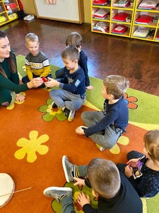 W ramach realizacji zadania listopadowego projektu ”Gramy Zmysłami” Liski podróżowały do Krainy Zmysłu Słuchu👂. Najbardziej dzieciom podobało się memory słuchowe, gdzie rozróżniały dźwięki przyjazne😊 i nieprzyjazne☹️ dla ucha, reagowały odpowiednio ruchem na dźwięki wysokie i niskie. Poznały instrumenty muzyczne oraz próbowały je rozpoznać po dźwięku. Na koniec podzieleni na małe grupki zagrały na instrumentach do utworu muzycznego. Liski świetnie poradziły sobie z tym zadaniem!
