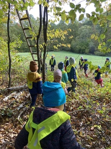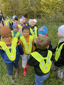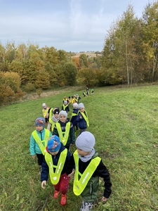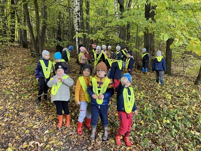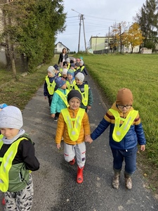 Przedszkolaki z grupy Lisków wybrały się na pieszą wycieczkę do lasu. Na szczęście piękna pogoda dopisała i dzieci mogły przebywać na łonie natury. Głównym celem wycieczki było zapoznanie dzieci ze zwierzyną i roślinnością tam występującą, prowadzenie obserwacji przyrodniczych, poznawanie przyrody zmysłami, przybliżenie przedszkolakom środowiska przyrodniczego. Przedszkolaki wyruszyły na spacer leśnymi dróżkami, poznawały przyrodę patrząc, słuchając i dotykając. Obserwowały las, który kryje w sobie wiele ciekawych tajemnic. Poznały różnorodność szaty roślinnej lasu: drzewa iglaste, liściaste, krzewy, mchy i runo leśne. Słuchały odgłosów lasu, a do kącików przyrodniczych zbierały "skarby", które pani Jesień zostawiła w lesie. Dzieci nauczyły się prawidłowego zachowania w lesie, by nie ucierpiała leśna przyroda. Zrozumiały znaczenie lasu dla ludzi i zwierząt. Doświadczyły też, że las to źródło świeżego powietrza. Wycieczka do lasu wzbogaciła wiedzę przedszkolaków, miała też walory zdrowotne. Dzieci spędziły miło czas na świeżym, zdrowym powietrzu w otoczeniu pięknej, malowniczej przyrody leśnej.