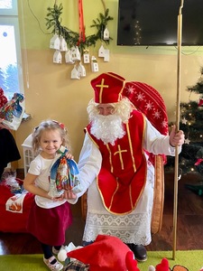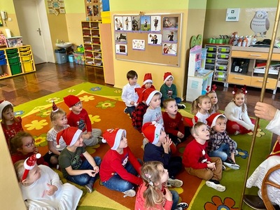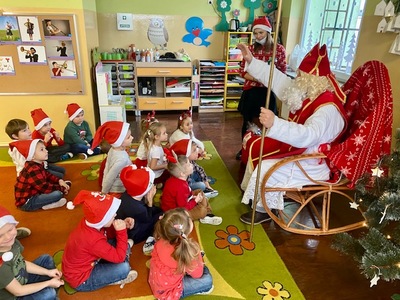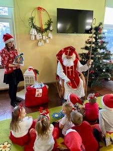 W dniu dzisiejszym od samego rana grupa Lisków wyczekiwała z niecierpliwością spotkania ze Świętym Mikołajem, który wreszcie odwiedził nasze przedszkole przynosząc wspaniałe prezenty. Wielką niespodzianką były bilety na wyjazd do Parku Rozrywki "Fantazja". Dziękując za upominki przedszkolaki zaśpiewały piosenkę. Żegnając się z dziećmi Mikołaj obiecał, że na pewno wróci za rok.
