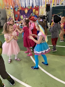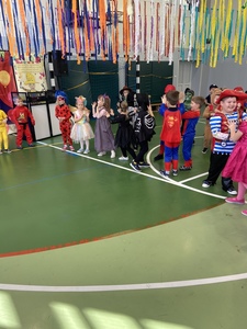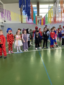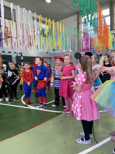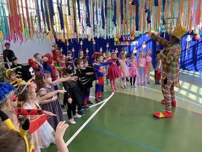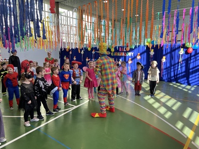 Jak co roku w przedszkolu organizowany jest bal karnawałowy. Na tymże balu nie może zabraknąć wielkiego otwarcia przybranej balowej sali oraz powitania gości. Salę dekoruje się balonami i serpentynami. Na kotarze można podziwiać prace plastyczne - klauny, które wykonały dzieci. Pierwszym punktem balu karnawałowego w przedszkolu jest uroczyste rozpoczęcie zabawy. W tym roku niespodzianką był Pan Humorek, który zabawiał dzieci przeróżnymi tańcami, pląsami i zabawami. Na koniec aby ochłonąć, Pan Humorek przedstawił pokazy iluzjonistyczne, które dla dzieci były niesamowitym wrażeniem. Do zobaczenia na przyszłym balu karnawałowym.