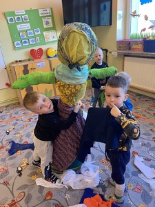 Powitanie wiosny to dla każdego przedszkolaka wyczekiwane wydarzenie. Ogromne emocje wśród dzieci wzbudziły już same przygotowania, które rozpoczęliśmy dużo wcześniej niż kalendarzowe nadejście wiosny. Podczas licznych spacerów, szukaliśmy oznak nowej pory roku, poznaliśmy również piosenki o tematyce wiosennej. Dzieci z wielkim zaangażowaniem pomagały w wykonaniu kukły Marzanny.