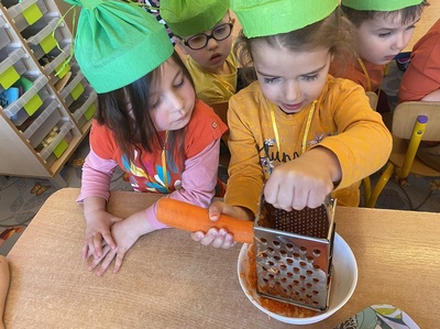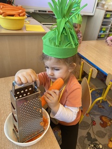 W tym dniu dzieci spożywały marchewkę w różnej postaci: chrupały marchewkowe chrupsy, piły sok marchewkowy a nawet zrobiliśmy surówkę z marchewki i jabłka.