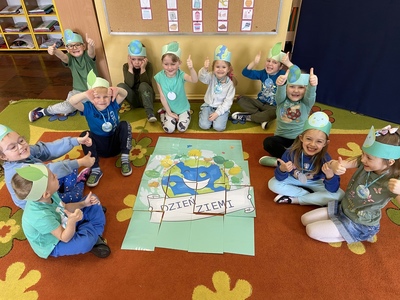 Co roku w kwietniu na całym świecie obchodzi się Międzynarodowy Dzień Ziemi. Z tej okazji 22 kwietnia dzieci z grupy Liski wzięły udział w imprezie. Właśnie tego dnia powinniśmy zastanowić się nad tym, jak chronić nasz wspólny dom czyli Ziemię. Świadomość ekologiczna jest bardzo ważna w wieku przedszkolnym, bo właśnie wtedy powinna zaczynać się edukacja w tym kierunku. Spotkanie rozpoczęło się od prezentacji multimedialnej „Ziemia nasza Planeta”. Następnie wspólnie z dziećmi zastanowiliśmy się, co możemy zrobić, aby nasza planeta była zdrowa, czysta i piękna. Propozycje te zamieściliśmy na wcześniej przygotowanym przez przedszkolaków plakacie kuli ziemskiej. Dzieci już wiedzą po co segregować odpadki i co to jest recykling. Największym zainteresowaniem dla przedszkolaków okazała się produkcja papieru czerpanego, do którego dodaliśmy płatki kwiatów. Po wysuszeniu dzieci chętnie go ozdobiły. Na koniec wszyscy zobowiązali się do dbania o Ziemię i przyrodę wokół nas. Przypieczętowaliśmy to posadzeniem "Drzewka Przyjaciół Ziemi".