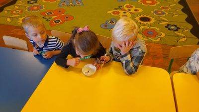 Po degustacji koktajlu, „Tygryski” miały możliwość oglądania pestek owoców za pomocą szkła powiększającego. Dzieciaki, bez problemu odgadywały z jakiego owocu pochodziły pestki.