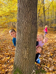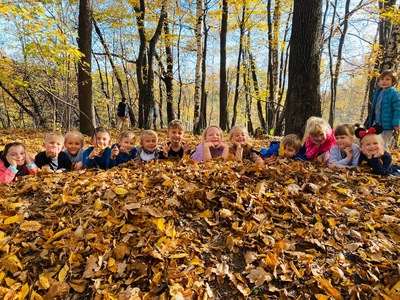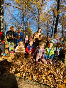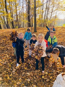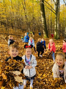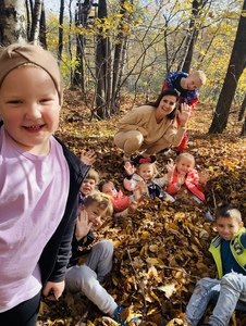 W dniu dzisiejszym skorzystaliśmy z pięknej pogody i wspólnie wybraliśmy się do lasu w poszukiwaniu śladów jesieni. Wyjście poza teren szkoły było okazją, aby przećwiczyć bezpieczne poruszanie się po drodze, chodniku. Dzieci bez problemu wskazały wszystkie czynności, które należy wykonać, żeby bezpiecznie przejść przez jezdnię. Po części teoretycznej dzieci pod czujnym okiem wychowawczyni poszły do lasu. Wędrując pieszo obserwowały zmiany zachodzące w tym środowisku jesienią. Rozpoznawały wybrane gatunki drzew. Poznały różnorodność szaty roślinnej lasu: drzewa iglaste, liściaste, krzewy, mchy i runo leśne. Słuchały odgłosów lasu, a do kącika przyrodniczego zbierały skarby, które pani Jesień zostawiła w lesie.
