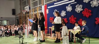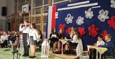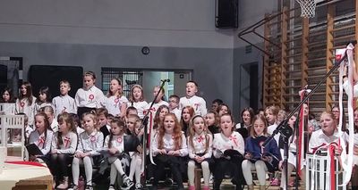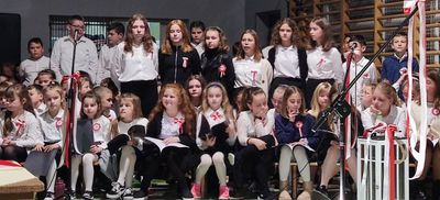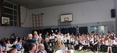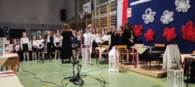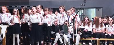 W czasie dzisiejszego koncertu przypomnieliśmy pieśni i piosenki, które śpiewano niegdyś w polskich domach. Pieśni, które towarzyszyły narodowi polskiemu w ważnych wydarzeniach dziejowych. Uczniowie wszystkich klas przygotowali piękne wykonanie utworów, które pociągnęło do wspólnego śpiewu. Przez pieśni zachęciliśmy wszystkich do wskrzeszenia i kontynuowania tradycji wspólnego śpiewania w gronie rodzinnym i towarzyskim, aby rozwijać poczucie więzi rodzinnej i narodowej, a także poprzez pieśni przybliżyć naszą historię i ułatwić jej zrozumienie.