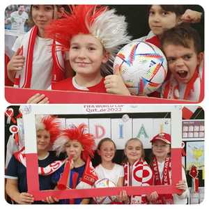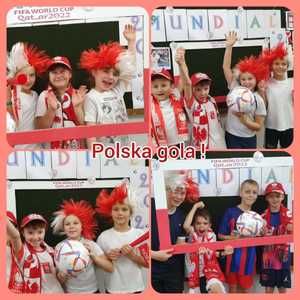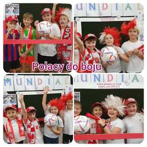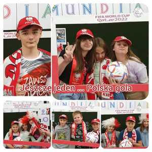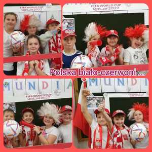 Strefa Kibica w ZSP Witanowice. Dziś wpisaliśmy się w nastrój Polaków kibicujących naszej drużynie na Mistrzostwach Świata w Piłce Nożnej 2022. Zasady kibicowania przećwiczone i utrwalone! Do boju, Polacy! .................. i zwycięzki remis. Gramy dalej w Mistrzostwach. Czekamy na mecz z aktualnymi Mistrzami Świata - Francuzami.
