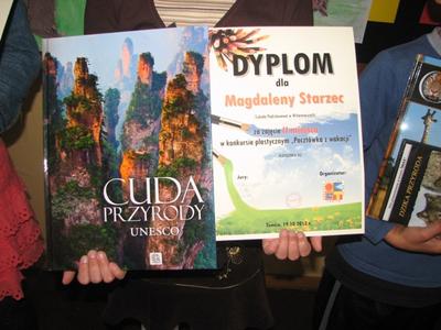 nie mieliśmy laureatów czołowych miejsc, ale wszystkie prace zostały nagrodzone dyplomami za udział i symbolicznymi nagrodami, które otrzymali: