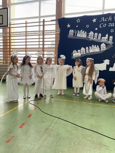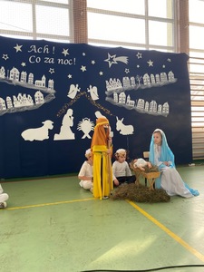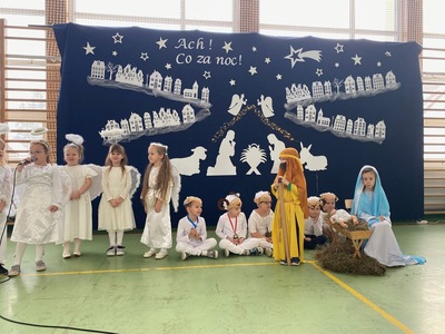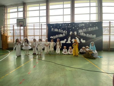 Nie inaczej było i w tym roku. Dnia 22 grudnia 2022 r., w sali gimnastycznej, zebrali się zaproszeni goście, uczniowie, rodzice oraz nauczyciele i pracownicy szkoły. Od razu dało się zauważyć niezwykle urokliwą scenografię, która wprowadziła publiczność w magiczną, świąteczną atmosferę.