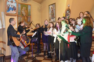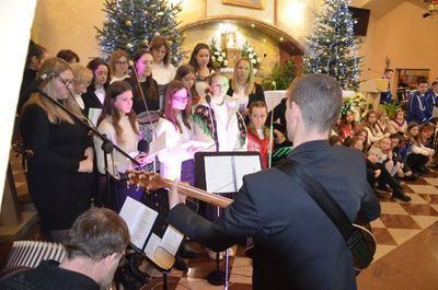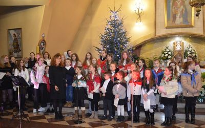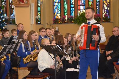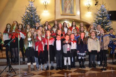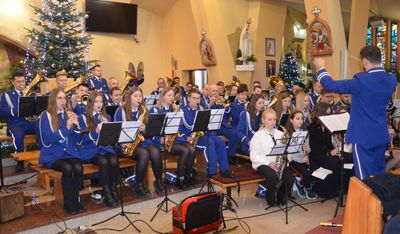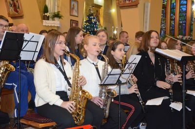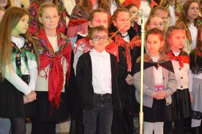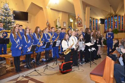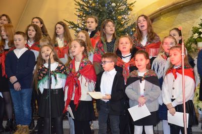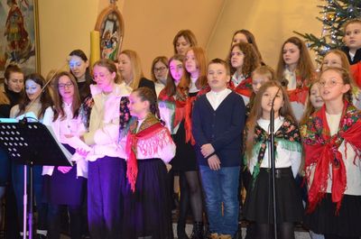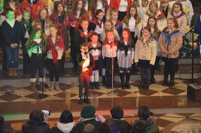 Ten piękny koncert kolęd i pastorałek wykonała Orkiestra Dęta z Zygodowic pod batutą kapelmistrza Daniela Mruczka, nasz chór szkolny „Karmelki” pod kierunkiem Pani Beaty Kokoszki oraz Schola Parafialna działająca przy parafii św. Mikołaja w Witanowicach pod kierunkiem Pani Marzeny Matlak. Z radością wsłuchaliśmy się w utwory, którymi były min. m.in. „Adeste fideles”, „Zaśnij dziecino”, „Raduj się świecie”, „Są takie święta”, „Feliz Navidad”, „Radość dziś nastała” i „Gore gwiazda Jezusowi”. Nasz zespół "Karmelki" w piękny sposób zaśpiewał "Zaśnij Dziecino", "Lulilanka", "Radość dziś nastała", "Oj maluśki, maluśki" - z solistą Jakubem Sikorskim i "Chojkę". Kolędowanie zakończyło się wspólnym wykonaniem kolędy "Przybieżeli do Betlejem pasterzem". Całość koncertu prowadził konferansjer Pan Maciej Mrowiec.