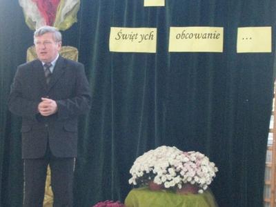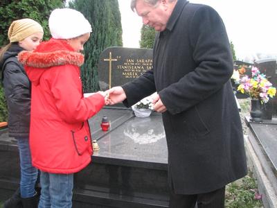 31 października 2012 roku na sali gimnastycznej zgromadziliśmy się, aby w chwili zadumy i refleksji zatrzymać się w wirze naszego szkolnego życia i pomysleć: po co człowiek żyje? Pan Dyrektor zwrócił uwagę na dwa ważne dni, które są przed nami: Uroczystość Wszystkich Świętych i Dzień Zaduszny. Świętość - to cel naszego życia, jak wspomniał ks. Proboszcz. Tę świętość zdobywamy już tu na ziemi. Zapalając znicz na mogiłach naszych Zmarłych módlmy się za wstawiennictwem naszych Świętych Patronów o niebo dla nich. Po krótkiej modlitwie, której przewodniczył ks. kan. Józef Wróbel uczniowie klas starszych wyruszyli na cmentarz parafialny w Witanowicach, aby tam złożyć złociste chryzantemy, zapalić znicze i pomodlić się za żołnierzy poległych w obronie naszej ojczyzny, a także za byłych nauczycieli i dyrektorów naszej szkoły. Przed południem delegacja Samorządu Uczniowskiego wraz z Opiekunem i Panem Dyrektorem nawiedzili cmentarz w Tomicach. Tu złożyli wyraz wdzięczności byłemu dyrektorowi szkoły śp. Janowi Sarapacie i śp. Adamowi Decowi - byłemu nauczycielowi muzyki i autorowi naszego hymnu szkoły.