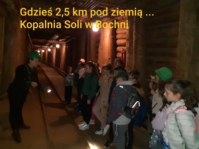W Bochni, po spotkaniu z przewodnikami, uczniowie zwiedzanie rozpoczęli od zjazdu pod ziemię szybem Campi. Zjazd windą na głębokość ponad 220 m zrobił na niektórych osobach z klasy IV duże wrażenie. Tuż po zjeździe pod ziemię, na uczestników wycieczki czekała kolejka, która przemierzała kilometrową trasę pomiędzy szybami Campi i Sutoris. Choć jechała dość szybko, to po drodze można było zobaczyć wiele zabytków i ciekawych, zagadkowych miejsc.