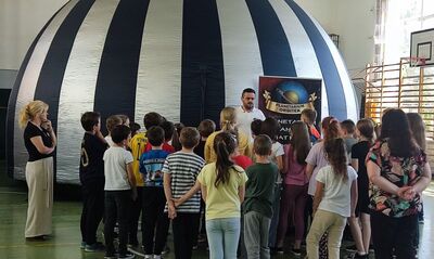 Tak właśnie można nazwać wyjątkowe zajęcia edukacyjne, które odbyły się w środę 31 maja w Mobilnym Planetarium Orbitek w szkolnej sali gimnastycznej. Były one dostosowane do każdej grupy wiekowej, a tematyka zgodna z podstawą programową edukacji przyrodniczej, przyrody i geografii.