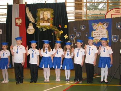 We wtorek 20 listopada 2012 roku przeżywaliśmy po raz trzydziesty Święto Patrona naszej Szkoły Jana Kochanowskiego. Z tej to okazji zaszczycili nas swą obecnością zaproszeni Goście, przedstawiciele władz Gminy Tomice z Panem Wójtem na czele oraz Rodzice. Pan Dyrektor dokonał uroczystego pasowania na Ucznia naszych Pierwszoklasistów, którzy przygotowując część artystyczną udowodnili, że już są tego godni. Po uroczystym pasowaniu, uczniowie klasy piątej w bardzo ciekawy sposób postarali się przenieść czasy Jana Kochanowskiego do współczesności. Okazało się, że i tym razem nasz wielki Jan z Czarnolasu odkrył swój talent do twórczości. Po częściach oficjalnych nastąpił moment tradycyjnych otrzęsin Czwartoklasistów. Uczniowie klas 0 - III po poczęstunku i chwili przerwy, skorzystali z urządzeń multimedialnych w naszej szkole i obejrzeli filmy na dużym ekranie. Jak przystało zaś na starszaków czyli uczniów klas IV - VI, uroczystość szkolną zakończyli dyskoteką - niestety tym razem bardzo krótką.