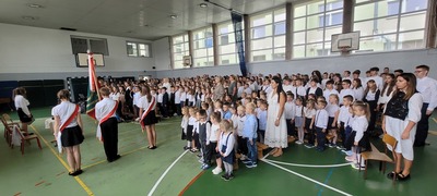 Oficjalną część inauguracji roku szkolnego rozpoczęto od wprowadzenia pocztu sztandarowego i wspólnego odśpiewania hymnu narodowego. Następnie przywitano wszystkich zgromadzonych i głos zabrał Pan dyrektor Daniel Mruczek.
