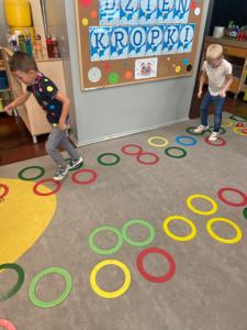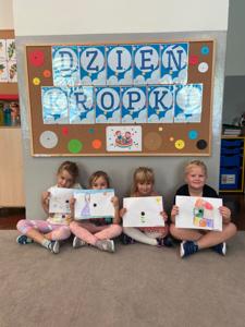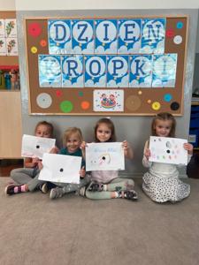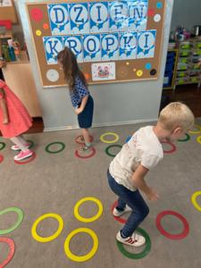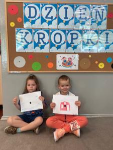 Dnia 15 września 2023 roku przedszkolaki z grupy Liski uroczyście obchodziły Międzynarodowy Dzień Kropki. Tego dnia wszyscy bez wyjątku mieli ubrania wypełnione kolorowymi kropkami. Na zajęciach poznaliśmy genezę tego święta. Uważnie wysłuchaliśmy opowiadania jak to zwyczajna kropka zmieniła świat małej dziewczynki o imieniu Vashti. Historia ta uświadomiła przedszkolakom, że każdy z nas ma jakieś ukryte zdolności, talenty, które gdzieś tam drzemią głęboko i czekają na nasze odkrycie. Tak jak nasza bohaterka szukaliśmy naszych mocnych stron by podnieść poczucie wartości wszystkich przedszkolaków. Tego dnia również dostrzegaliśmy kropki tam, gdzie wcześniej nikt na nie nie zwracał uwagi. Okazało się, że kropki towarzyszą nam w naszym codziennym życiu. Są w literce "i" ,kropkach biedronki, są w diamentowej koronie króla, a nawet zdobią kapelusz muchomora. Wspólnie z dziećmi ułożyliśmy też własną historię małej Kropki, a potem dzieci pokonały "kropkową" drogę. Dzieci wykanały prace plastyczną - nspiracją do tworzenia rysunku była jedna, czarna kropka.