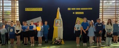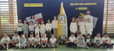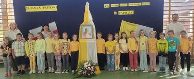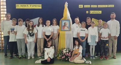 Corocznie, od 2001 roku organizowany jest w Polsce Dzień Papieski. W tym roku przypadł on w niedzielę15 października, w przeddzień 45. rocznicy wyboru Kardynała Karola Wojtyły na Stolicę Piotrową. Był to już 23. Dzień Papieski pod hasłem: „Św. Jan Paweł II – cywilizacja życia”. Świętowanie tego dnia jest szczególną formą wdzięczności wyrażoną Ojcu Świętemu Janowi Pawłowi II za katechezę jego życia i nauczania, za chrześcijańską miłość, odwagę, pokorę i mądrość, którymi dzielił się z ludźmi. W piątek 13 października z tej to okazji w szkole uczestniczyliśmy w apelu przygotowanym przez uczniów klasy V pod kierunkiem p. Katechetki Edyty Bliźnik. Uczniowie podkreślili przeżycie tego dnia swoim strojem w kolorach papieskich, ale także właściwą postawą i modlitwą za wstawiennictwem św. Jana Pawła II. Nie mogło zabraknąć w tym dniu radośnie śpiewanych pieśni: hymnu Światowych Dni Młodzieży przeżywanych w Polsce w 1991 r - Abba Ojcze i ulubionej "Barki" - przy akompaniamencie p. Daniela Mruczka. Ten wyjątkowy apel ks. Adam Bartnicki zakończył modlitwą za wstawiennictwem Św. Jana Pawła II. W niedzielę 15 października nasi Wolontariusze z Szkolnego Koła Caritas włączyli się w przeprowadzenie ogólnopolskiej akcji organizowanej przez Fundację "Dzieło Nowego Tysiąclecia" przy kościele w Witanowicach, która prowadzi program stypendialny wyrównujący szanse edukacyjne młodzieży pochodzącej z małych miejscowości.