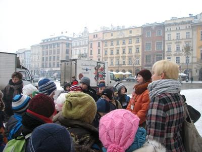 W dniu 11 grudnia 2012 roku uczniowie klasy IV wraz z opiekunami udali się na wycieczkę do Krakowa. Bilet na tę wyprawę klasa otrzymała od Św. Mikołaja w dniu 6 grudnia. W planie wycieczki było: zwiedzanie Krakowskiego Rynku, Sukiennic, Kościoła Mariackiego, Kościoła Franciszkanów, spacer podziemiami KRAKOWSKIEGO RYNKU. To niesamowite przeżycie wędrować podziemiami Rynku i poznawać jego historię. Największe wrażenie na nas zrobił jednak widok Koscioła Mariackiego oknem z podziemii. Podczas spaceru podziemiami każdy mógł poznać ludzi z tamtych czasów i zważyć się na wadze, gdzie zamiast kilogramów jednostką były kamienie. Ostatnim punktem wycieczki była WYSTAWA SZOPEK KRAKOWSKICH. Nikt z nas nie wyobrażał sobie jakie to mogą być dzieła sztuki. Serdecznie dziękujemy Rodzicom za tak wspaniały prezent.