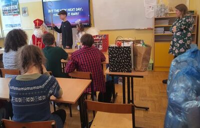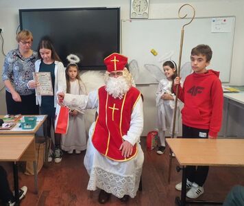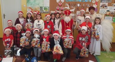 Tak właśnie można powiedzieć o środzie 6 grudnia. W barwnych czerwonych kolorach przybyliśmy do szkoły, by oczekiwać spotkania ze św. Mikołajem. Nie musieliśmy długo czekać. Już o godz. 8.00 słychać było dźwięk anielskich dzwonków oczekiwanego Gościa. Rozpoczął wędrówkę po klasach. Oj, co było radości oplatanej zaskoczeniem, piosenkami, wierszami i miłymi rozmowami ze św. Mikołajem. Oczywiście nie można pominąć cennych wskazówek, których udzielił Gość z Nieba każdej klasie, stosownie co do wieku. Nikomu też nie zabrakło prezentu. A czy ktoś otrzymał w tym roku "rózgę"? Tego nie wiemy, gdyż nikt nie podzielił się tą informacją. Wiemy jednak, że każdy był zadowolony i na długie chwile zachowa w swoim sercu to wyjątkowe spotkanie ze św. Mikołajem.