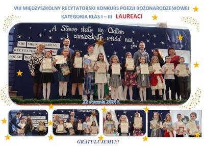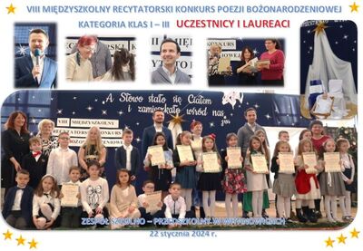 W poniedziałek 22 stycznia 2024 roku w Zespole Szkolno – Przedszkolnym w Witanowicach odbył się VIII Międzyszkolny Konkurs Recytatorski Poezji Bożonarodzeniowej. W Konkursie uczestniczyli uczniowie klas młodszych I –III oraz klas starszych IV –VI Szkół Podstawowych: Tomic, Radoczy, Woźnik, Babicy i Witanowic. W sumie na scenie zaprezentowało się 47 recytatorów.