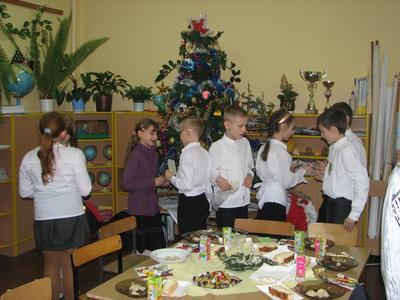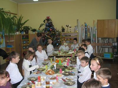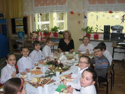 "Przy Wigilijnym stole, łamiąc opłtek święty, pamiętaj - dzień ten radosny w miłości jest poczęty". Spotkanie w gronie klasowym przy Wigilijnym stole - to pięknia tradycja pielęgnowana w Naszej Szkole już od wielu lat. Uczniowie pod okiem wychowawców, a także rodziców przygotowali świąteczne stoły. Na nim biały obrus, sianko, Mały Jezus, opłatki... Na stole pojawiły się m.in. takie potrawy jak - ryba, barszcz, uszka. Czytanie Pisma Świętego, wspólna modlitawa, łamanie sie opłatkiem i składanie życzeń umocniło każdego z nas, nie tylko na czas nadchdzących Świąt Bożego Narodzenia, ale i na każdy nowy dzień.