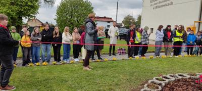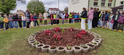 W poniedziałek 22 kwietnia z radością otwarliśmy nowopowstały klomb kwietny, znajdujący się przy wejściu do szkoły od strony szatni. Opiekę nad nim sprawuje Szkolne Koło Caritas. Jego członkowie zasadzili w nim czerwone azalie oraz hortensję bukietową. Całość klombu ozdobiona jest betonowymi donicami kwietnymi /gazonami/, w których już częściowo zostały zasadzone kwiaty. Kolejne będą systematycznie dosadzane. By wszystko wyglądało pięknie, teren klombu został wypełniony pachnącą sosnową korą. Otwarcia klombu dokonał Pan Dyrektor wraz z opiekunkami SKC w obecności członków SKC. Wolontariuszki z klasy VII i VIII odczytały sentencje, które mają wzywać nas i przechodniów do czynienia dobra. Teksty te zostały również umieszczone na klombie, pomiędzy kwiatami i kolorowymi wiatrakami. Zachęcamy do częstego przypominania ich.