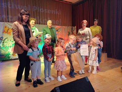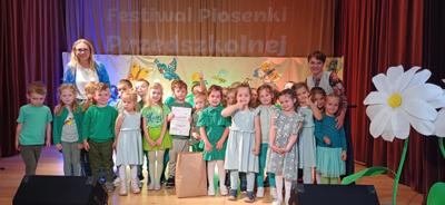 i pierwszy kontakt z mikrofonem. Dzieci bardzo przeżywały swoje występy oraz kibicowały swoim kolegom i koleżankom. W tym roku na naszej scenie królowały przede wszystkim dziecięce przeboje. Na zakończenie festiwalu każda grupa i soliści zostali nagrodzeni pamiątkowym dyplomem oraz upominkiem. Jest to impreza niezwykła, a to dlatego iż na scenie występują tylko i wyłącznie dzieci. Prezentują się zarówno przed swoimi kolegami i koleżankami, jak i przed przedszkolakami z sąsiednich przedszkoli. Przełamują swoje lęki, tremę i świetnie się bawią, dając innym wiele radości i wzruszenia. Gratulujemy oczywiście dzieciom za piękne i wzruszające występy 😊.