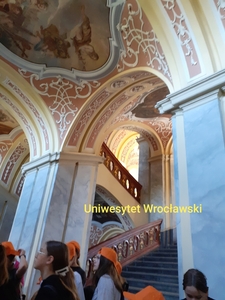 Następnego dnia udaliśmy się na Rynek Wrocławski, skąd przeszliśmy do ,,Muzeum Pana Tadeusza”. Zobaczyliśmy tam różne książki w dawnym stylu XIX i dowiedzieliśmy się wielu informacji o Adamie Mickiewiczu. Wirtualnie oglądaliśmy rękopis ,,Pana Tadeusza”. Trzeba przyznać, że pismo nasz wieszcz miał mało czytelne. Później poszliśmy do Opery Wrocławskiej na widowisko,pt.:,,Yemaya - Królowa Mórz”. Przedstawienie wywarło na nas ogromne wrażenie, większość z nas była pierwszy raz w operze! Piękne widowisko dostarczyło nam wzruszeń, chodzi o muzykę, śpiewy i temat (nawiązanie do sprawy dzieci migrantów tonących w oceanach). Po zakończeniu przedstawienia podjechaliśmy do Zoo. Najpierw wspólnie wybraliśmy się do Afrykarium, a potem podzieleni na trzy grupy, żeby oglądać inne części Zoo. Głównym celem mojej grupy było obejrzenie Kapibary i udało nam się ten cel osiągnąć. Kiedy wyszliśmy z Zoo poszliśmy zobaczyć jedne z największych fontann w Europie. Następnie przyjechaliśmy do hotelu, a potem, po kolacji znów poszliśmy szukać latarnika. Na szczęście tym razem nam się udało i zobaczyliśmy go, wyglądał jak jakaś postać z bajki. Latarnik zapalił kilka latarni, z nikim nie rozmawiał, ale pozwolił na zrobienie fotografii .Zadowoleni wróciliśmy do hotelu i poszliśmy spać, by mieć siły na następny dzień atrakcji.