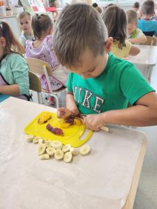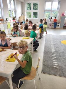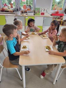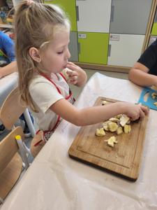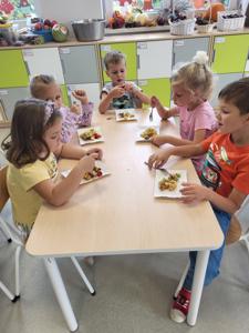W piątek w grupie LISKÓW wspólne przyrządzanie, a następnie degustacja pysznej i zdrowej sałatki sprawiła dzieciom wiele radości. Sałatka udała się i wyszła wspaniale. Nikogo nie trzeba było namawiać do jej spróbowania, tym bardziej, że przygotowało się ją samodzielnie z wielkim zapałem i zaangażowaniem. Po takich zajęciach dzieci napewno zapamiętają, że to co zdrowe może być również bardzo smaczne.