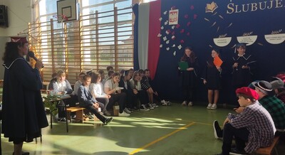 - część artystyczna w wykonaniu uczniów kl. VIII poświęcona twórczości Patrona Jana z Czarnolasu