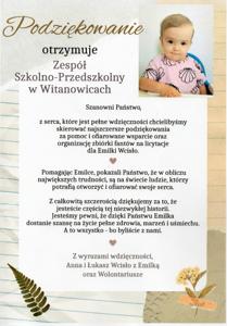 I udało się. W piątek 28 lutego 2025 r. otrzymaliśmy przez ręce Pana Dyrektora podziękowanie od rodziców Emilki, które z radością przekazujemy do informacji. Ufamy, że Emilka wygra walkę z trudną chorobą, czego jej z serca życzymy.