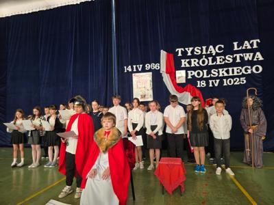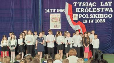 14 kwietnia w naszej szkole uczestniczyliśmy w okolicznościowym apelu, który był poświęcony narodzinom Państwa Polskiego.