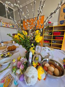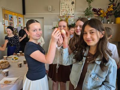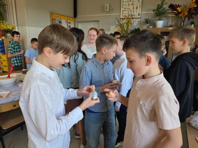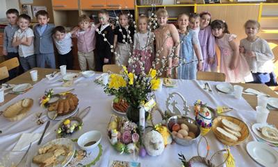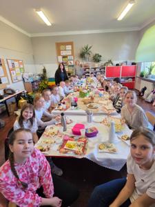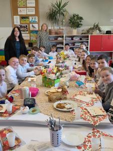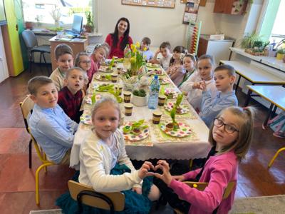 Przed apelem o godz. 8.00 w gronie klasowym spożyliśmy śniadania wielkanocne, które były okazją do wspólnych rozmów na temat tradycji wielkanocnych kultywowanych w naszych rodzinach.