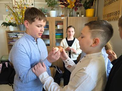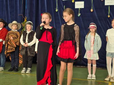 „Świat bliżej nas” – uroczysty apel z okazji Świat Wielkanocnych odbył się 16 kwietnia 2025 roku w naszej szkole. Uczniowie wprowadzili nas w tradycje i obrzędy obchodzone z tej okazji w różnych krajach i na wielu kontynentach. Odwiedziliśmy Togo w Afryce, Ekwador w Ameryce Południowej, Niemcy, Austrię, Czechy, Brazylię, Stany Zjednoczone, Hiszpanię, Wielką Brytanię, Włochy oraz Kanadę i oczywiście Polskę. Ciekawostką było na przykład, że w Brazylii bardzo ważne jest oddanie czci symbolom natury. Popularny kwiat Macela, który kwitnie tylko w czasie trwania Wielkiego Postu, święcony jest w Niedzielę Palmową przez księży. Wierzy się, że ma on potem właściwości lecznicze, a także to,że Eskimosi są ludem głęboko wierzącym, łączącym wiarę ze swoim codziennym życiem. W Czechach Wielkanoc obchodzona jest jako pierwszy dzień wiosny. Bardzo popularne w tym kraju jest także słodkie ciasto wielkanocne zwane mazancem. Wierni w Ekwadorze przeżywają Zmartwychwstanie nie tylko sercem, ale też zaangażowanym uczestnictwem w obrzędach. Wielkanoc w Polsce to najważniejsze święto chrześcijańskie. Dawniej święcono wszystkie pokarmy, które miały zostać spożyte w czasie wielkanocnego śniadania! Świętowanie Wielkiej Nocy rozpoczynamy już tydzień przed Wielką Niedzielą. Tak samo jak dawniej, obchodzimy Niedzielę Palmową – zwaną kiedyś wierzbną lub kwietną. Ostatnie trzy doby tego tygodnia: Wielki Czwartek (wieczór), Wielki Piątek, Wielka Sobota i Niedziela Zmartwychwstania znane są jako Triduum Paschalne (Triduum Paschale). Niedziela wielkanocna rozpoczyna się już w sobotę po zachodzie słońca. Rozpoczyna ją Wigilia Paschalna, podczas której zapala się paschał – wielką woskową świecę, która symbolizuje zmartwychwstałego Chrystusa. Apel został przygotowany przez klasę trzecią wraz z wychowawczynią Panią Barbarą Jasińską i nauczycielem wspomagającym Panią Mariolą Szypułą. Nad oprawą muzyczną czuwał Pan Dyrektor Daniel Mruczek.