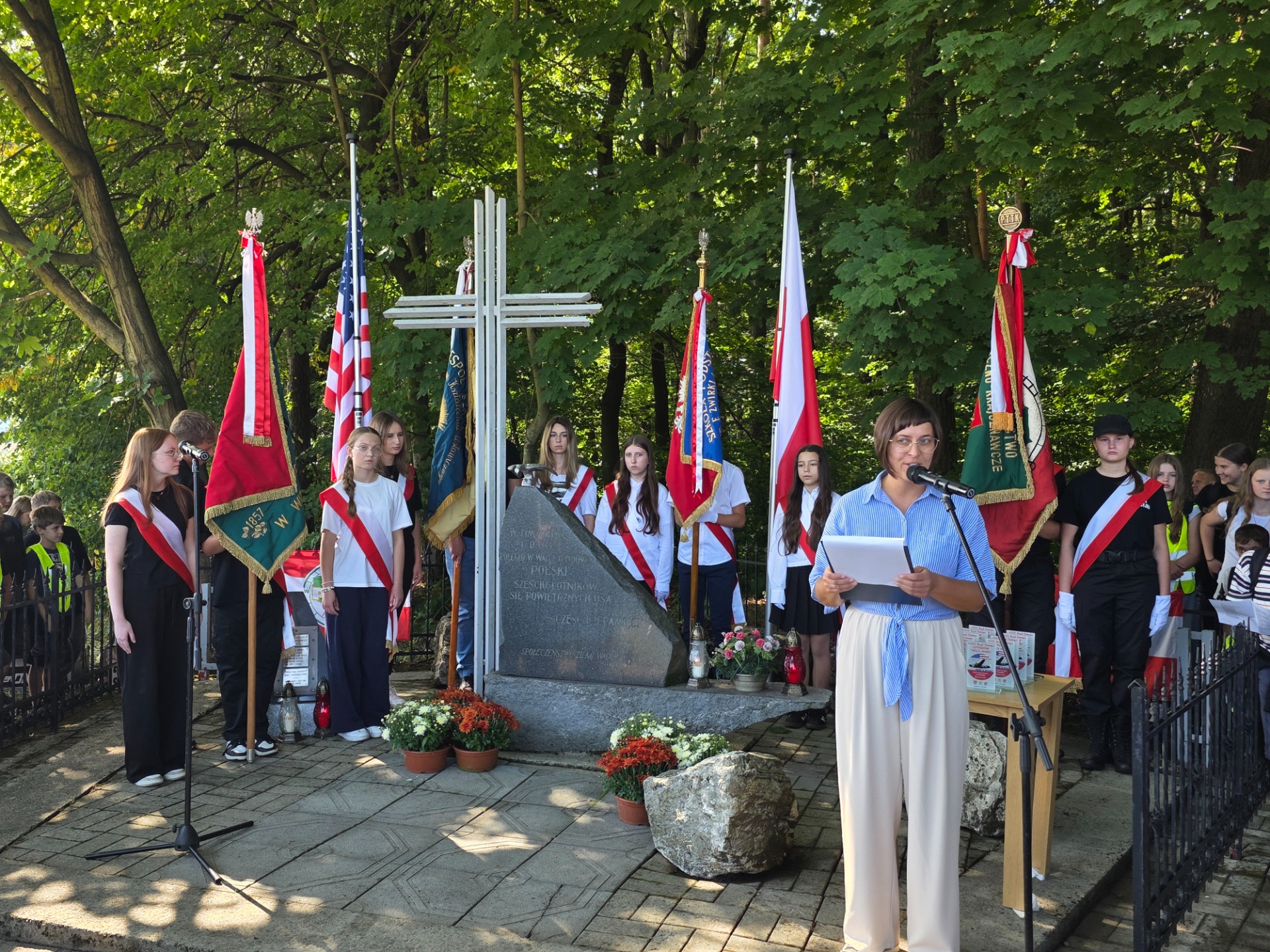Rajd odbywał się w 81 rocznicę bohaterskiej śmierci 6 członków załogi bombowca "Hell’s Angel". Uczniowie klas IV - VII wyruszyli spod szkoły o godz. 9.45. Piękna pogoda sprzyjała. Był to czas wspólnych rozmów i podziwiania krajobrazu naszej Małej Ojczyzny. Po drodze skorzystaliśmy z postoju przy budynku Stowarzyszenia we Lgocie. Wielu z nas oglądało były budynek szkoły filialnej w Lgocie, a w niej piękne historyczne zdjęcia. Po posiłku ruszyliśmy w dalszą drogę. Na miejsce dotarliśmy o godz. 11.40. Tu był czas na pyszny posiłek przygotowany przez Panie z KGW Zygodowice. O godz. 12.00 rozpoczęła się podniosła uroczystość prowadzona przez Panią Anetę Homel - dyrektora Ośrodka Kultury Gminy Tomice. Podczas podniosłego momentu składania kwiatów przez różne delegacje, przedstawiciele naszej szkoły złożyli zapalone znicze przed pomnikiem oddając hołd poległym podczas katastrofy.
