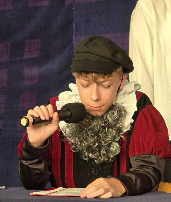 Aby wzbudzić zainteresowanie wszystkich uczniów naszej szkoły odbiorem czytanych fragmentów twórczości, jeden z uczniów niczym aktor odegrał rolę Kochanowskiego.
